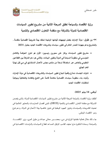 نمضتي يذلاو ،ةلودلل ةيداصتقلاا تاسايسلا ريوطت عورشم نم ةيناثلا ةلحرملا ةحايسلاو داصتقلاا ةرازو تقلطأ