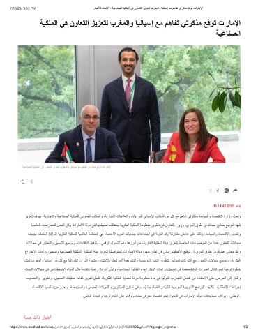 7/16/25, 3:53 PM رﺎﺑﺧﻸﻟ دﺎﺣﺗﻻا - ﺔﯾﻋﺎﻧﺻﻟا ﺔﯾﻛﻠﻣﻟا ﻲﻓ نوﺎﻌﺗﻟا زﯾزﻌﺗﻟ برﻐﻣﻟاو ﺎﯾﻧﺎﺑﺳإ ﻊﻣ مھﺎﻔﺗ ﻲﺗرﻛذﻣ ﻊﻗوﺗ تارﺎﻣﻹا
