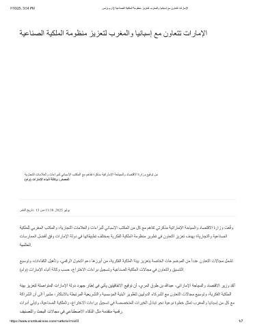ﺔﯿﻋﺎﻨﺼﻟا ﺔﯿﻜﻠﻤﻟا ﺔﻣﻮﻈﻨﻣ ﺰﯾﺰﻌﺘﻟ بﺮﻐﻤﻟاو ﺎﯿﻧﺎﺒﺳإ ﻊﻣ نوﺎﻌﺘﺗ تارﺎﻣﻹا