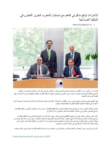 قفو تاراملإا ةلود يف اهتاقيبطت فلتخمب ةيركفلا ةيكلملا ةموظنم ريوطت يف نواعتلا زيزعت فدهب ،ةيراجتلاو ةيعانصلا ةيكلملل يبرغملا
