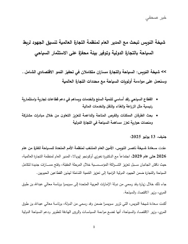 طبرل دوهجلا قيسنت ةيملاعلا ةراجتلا ةمظنم ل ماعلا ريدملا عم ثحبت سيونلا ةخيش