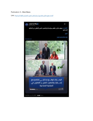 Publication: X – Wam News Link: # ةيعانصلا ةيكللما يف نواعتلا زيزعتل برغلماو اينابسإ عم مهافت يتركذم عقوت تاراملإا