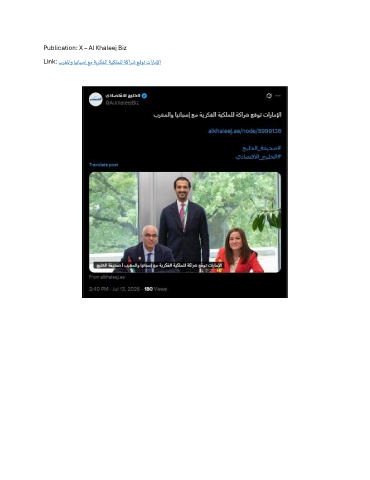 Publication: X – Al Khaleej Biz Link: برغلماو اينابسإ عم ةيركفلا ةيكلملل ةكارش عقوت تاراملإا