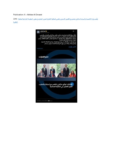 Publication: X – Akhbar Al Emarat َّ Link: ةيكلملل ةيتارام لإا ةموظنلما ريوطت يف نواعتلا زيزعتل ةيركفلا ةيكلملل يبرغلماو ينابسلإا نيبتكلما عم مهافت يتركذم ةحايسلاو داصتقلاا ةرازو تعقو ةيركفلا.