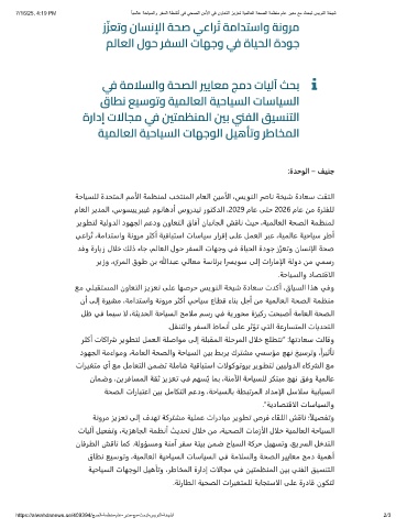 7/16/25, 4:19 PM ً ﺎﯾﻣﻟﺎﻋ ﺔﺣﺎﯾﺳﻟاو رﻔﺳﻟا ﺔطﺷﻧأ ﻲﻓ ﻲﺣﺻﻟا نﻣﻷا ﻲﻓ نوﺎﻌﺗﻟا زﯾزﻌﺗ ﺔﯾﻣﻟﺎﻌﻟا ﺔﺣﺻﻟا ﺔﻣظﻧﻣ مﺎﻋ رﯾدﻣ ﻊﻣ ثﺣﺑﺗ سﯾوﻧﻟا ﺔﺧﯾﺷ