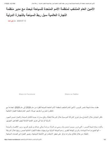 7/16/25, 4:21 PM مﻼﺳﻟا ﺔﻟﺎﺳر – ﺔﯾﻟودﻟا ةرﺎﺟﺗﻟﺎﺑ ﺔﺣﺎﯾﺳﻟا طﺑر لﺑﺳ ﺔﯾﻣﻟﺎﻌﻟا ةرﺎﺟﺗﻟا ﺔﻣظﻧﻣ رﯾدﻣ ﻊﻣ ثﺣﺑﺗ ﺔﺣﺎﯾﺳﻠﻟ ةدﺣﺗﻣﻟا مﻣﻷا ﺔﻣظﻧﻣﻟ بﺧﺗﻧﻣﻟا مﺎﻌﻟا نﯾﻣﻷا