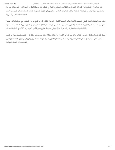 7/16/25, 4:21 PM مﻼﺳﻟا ﺔﻟﺎﺳر – ﺔﯾﻟودﻟا ةرﺎﺟﺗﻟﺎﺑ ﺔﺣﺎﯾﺳﻟا طﺑر لﺑﺳ ﺔﯾﻣﻟﺎﻌﻟا ةرﺎﺟﺗﻟا ﺔﻣظﻧﻣ رﯾدﻣ ﻊﻣ ثﺣﺑﺗ ﺔﺣﺎﯾﺳﻠﻟ ةدﺣﺗﻣﻟا مﻣﻷا ﺔﻣظﻧﻣﻟ بﺧﺗﻧﻣﻟا مﺎﻌﻟا نﯾﻣﻷا