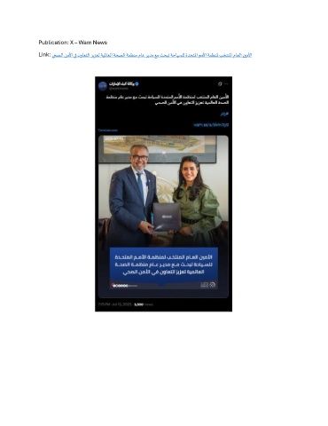 Publication: X – Wam News Link: يحصلا نملأا يف نواعتلا زيزعت ةيلماعلا ةحصلا ةمظنم ماع ريدم عم ثحبت ةحايسلل ةدحتلما مملأا ةمظنلم بختنلما ماعلا نيملأا