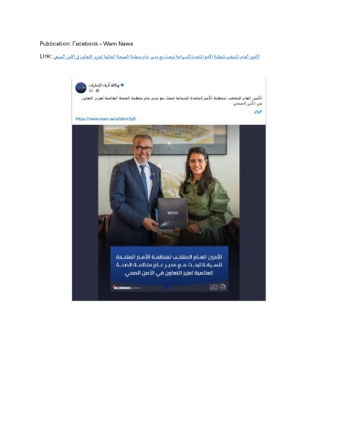 Publication: Facebook – Wam News Link: يحصلا نملأا يف نواعتلا زيزعت ةيلماعلا ةحصلا ةمظنم ماع ريدم عم ثحبت ةحايسلل ةدحتلما مملأا ةمظنلم بختنلما ماعلا نيملأا