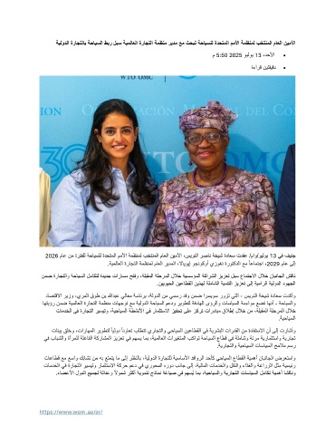 ةيلودلا ةراجتلاب ةحايسلا طبر لبس ةيملاعلا ةراجتلا ةمظنم ريدم عم ثحبت ةحايسلل ةدحتملا مملأا ةمظنمل بختنملا ماعلا نيملأا