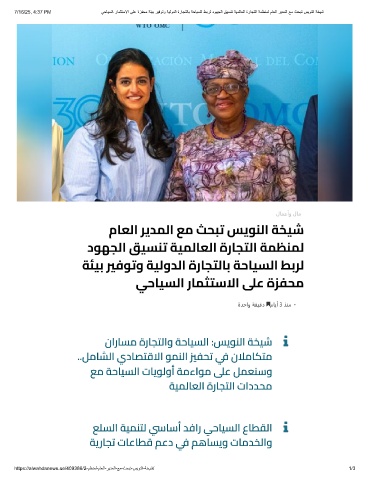 7/16/25, 4:37 PM ﻲﺣﺎﯾﺳﻟا رﺎﻣﺛﺗﺳﻻا ﻰﻠﻋ ةزﻔﺣﻣ ﺔﺋﯾﺑ رﯾﻓوﺗو ﺔﯾﻟودﻟا ةرﺎﺟﺗﻟﺎﺑ ﺔﺣﺎﯾﺳﻟا طﺑرﻟ دوﮭﺟﻟا ﻖﯾﺳﻧﺗ ﺔﯾﻣﻟﺎﻌﻟا ةرﺎﺟﺗﻟا ﺔﻣظﻧﻣﻟ مﺎﻌﻟا رﯾدﻣﻟا ﻊﻣ ثﺣﺑﺗ سﯾوﻧﻟا ﺔﺧﯾﺷ