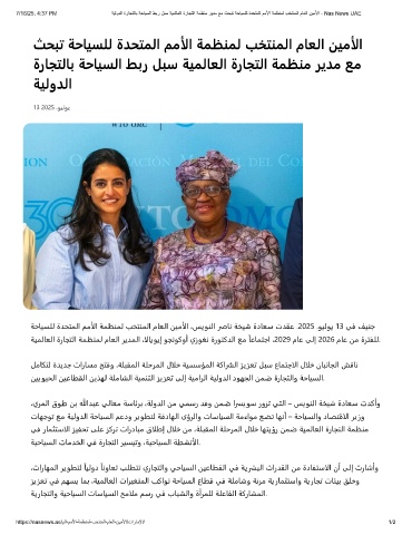 7/16/25, 4:37 PM ﺔﯾﻟودﻟا ةرﺎﺟﺗﻟﺎﺑ ﺔﺣﺎﯾﺳﻟا طﺑر لﺑﺳ ﺔﯾﻣﻟﺎﻌﻟا ةرﺎﺟﺗﻟا ﺔﻣظﻧﻣ رﯾدﻣ ﻊﻣ ثﺣﺑﺗ ﺔﺣﺎﯾﺳﻠﻟ ةدﺣﺗﻣﻟا مﻣﻷا ﺔﻣظﻧﻣﻟ بﺧﺗﻧﻣﻟا مﺎﻌﻟا نﯾﻣﻷا - Nas News UAE
