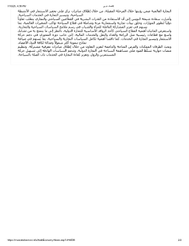 ﺔﻛﺮﺣ ﻞﯿﮫﺴﺗ ﻰﻟإ ﺔﻓدﺎﮫﻟا تﺎﺳﺎﯿﺴﻟا ﻢﻋﺪﺗو ،ﺔﯿﻟوﺪﻟا ةرﺎﺠﺘﻟا ﻲﻓ ﺔﺣﺎﯿﺴﻟا ﺔﻤھﺎﺴﻣ ﻰﻠﻋ ءﻮﻀﻟا ﻂﻠﺴﺗ ﺔﻳراﻮﺣ تﺎﺼﻨﻣ