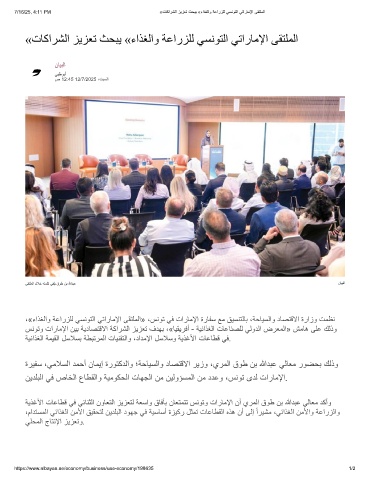 ،«ءاذﻐﻟاو ﺔﻋارزﻠﻟ ﻲﺳﻧوﺗﻟا ﻲﺗارﺎﻣﻹا ﻰﻘﺗﻠﻣﻟا» ،سﻧوﺗ ﻲﻓ تارﺎﻣﻹا ةرﺎﻔﺳ ﻊﻣ ﻖﯾﺳﻧﺗﻟﺎﺑ ،ﺔﺣﺎﯾﺳﻟاو دﺎﺻﺗﻗﻻا ةرازو تﻣظﻧ