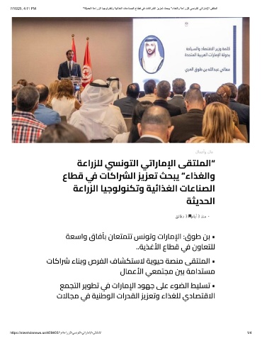 7/16/25, 4:11 PM "ﺔﺛﯾدﺣﻟا ﺔﻋارزﻟا ﺎﯾﺟوﻟوﻧﻛﺗو ﺔﯾﺋاذﻐﻟا تﺎﻋﺎﻧﺻﻟا عﺎطﻗ ﻲﻓ تﺎﻛارﺷﻟا زﯾزﻌﺗ ثﺣﺑﯾ "ءاذﻐﻟاو ﺔﻋارزﻠﻟ ﻲﺳﻧوﺗﻟا ﻲﺗارﺎﻣﻹا ﻰﻘﺗﻠﻣﻟا
