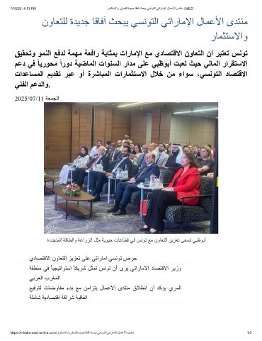 7/16/25, 4:13 PM رﺎﻣﺛﺗﺳﻻاو نوﺎﻌﺗﻠﻟ ةدﯾدﺟ ﺎﻗﺎﻓآ ثﺣﺑﯾ ﻲﺳﻧوﺗﻟا ﻲﺗارﺎﻣﻹا لﺎﻣﻋﻷا ىدﺗﻧﻣ | MEO