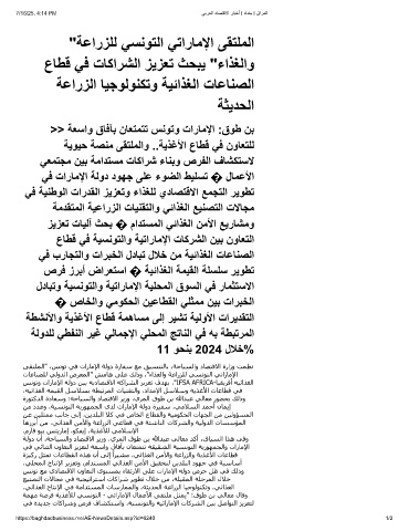 ﺔﻤﮫﻣ ﺔﺻﺮﻓ ﺔﻳﺬﻏﻸﻟ ﻲﺴﻧﻮﺘﻟا - ﻲﺗارﺎﻣﻹا لﺎﻤﻋﻷا ﻰﻘﺘﻠﻣ ﻞﺜﻤﻳ" :قﻮط ﻦﺑ ﻲﻟﺎﻌﻣ لﺎﻗو