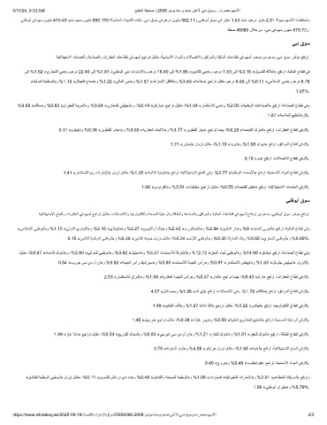 %0.85 «كﻟﺎﺳ»و %0.83 «نارﯾطﻠﻟ ﺔﯾﺑرﻌﻟا»و %0.64 «نزﺎﺧﻣﻠﻟ ﻲﺗﯾﻠﯾﺟأ»و ،%0.44 «نﻛرﺎﺑ» ﻊﺟارﺗ لﺑﺎﻘﻣ ،%1.54 «رﺎﻣﺛﺗﺳﻼﻟ ﻲﺑد»و %2.05 «ﺔﯾﻧطوﻟا تﺎﻋﺎﻧﺻﻟا» ﻊﻔﺗرا ،ﺔﻋﺎﻧﺻﻟا عﺎطﻗ ﻲﻓو