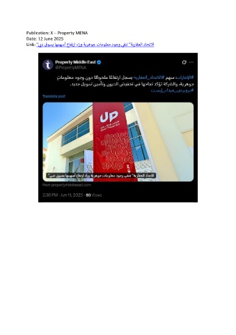 Publication: X – Property MENA Date: 12 June 2025 Link: " بد قوسب اهمهسأ عافترا ءارو ةيرهوج تامولعم دوجو فنت "ةيراقعلا داحتلاا ي ي