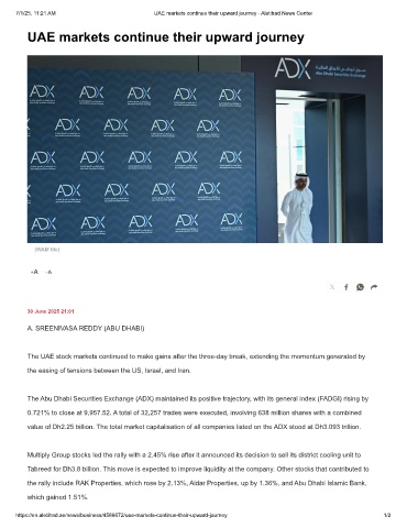 7/1/25, 11:21 AM UAE markets continue their upward journey - Aletihad News Center