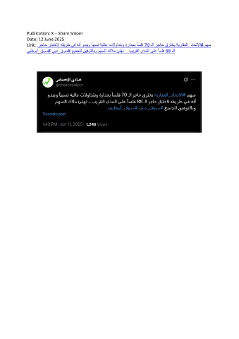 Publication: X – Share Snioer Date: 12 June 2025 Link: زجاح رابتخلا هقيرط يف هنأ ودبيو ًايبسن ةيلاع تلاوادتبو ةرادجب ًاسلف 70 ـلا زجاح قرتخي ةيراقعلا_داحتلاا# مهس يبظوبأ_قوس# يبد_قوس# عيمجلل قيفوتلابو مهسلا كلام ئنهن .. بيرقلا ىدملا ىلع ًاسلف 88 ـلا