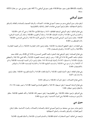 %0.59 «ﻣﻼﺳﻹا ﺒﻇﻮﺑأ»و %0.73 «لوﻷا ﺒﻇﻮﺑأ»و %1.29 «يرﺎﺠﺘﻟا ﺒﻇﻮﺑأ» ﻢﻬﺳأ ﻊﺟاﺮﺗ ﻞﺑﺎﻘﻣ ،%0.87