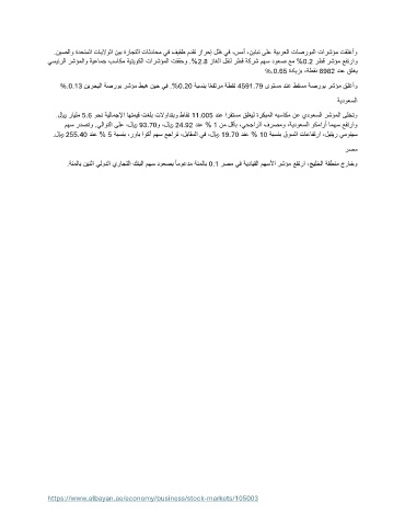 %. 0.13 نيرحبلا ةصروب رشؤم طبه نيح يف .% 0.20 ةبسنب اًعفترم ةطقن 4591.79 ىوتسم دنع طقسم ةصروب رشؤم قلغأو