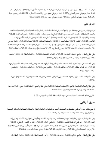 «ﻢﻳر تارﺎﻣﻹا» ﻊﺟاﺮﺗ ،ﺔﻴﻛﻼﻬﺘﺳﻻا ﻊﻠﺴﻟا عﺎﻄﻗ ﻓو .%1.38 «ﺔﻴﻨﻃﻮﻟا ﺖﻨﻤﺳﻷا» ﻊﺟاﺮﺗ ،ﺔﻴﺳﺎﺳﻷا داﻮﻤﻟا عﺎﻄﻗ ﻓو