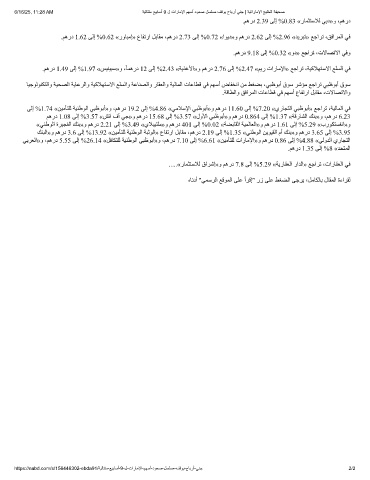 ﻢھرد 1.08 ﻰﻟإ %3.57 «ﺶﺗا فأ ﻲﺟ»و ﻢھرد 15.68 ﻰﻟإ %3.57 «لوﻷا ﻲﺒظﻮﺑأ»و ﻢھرد 0.864 ﻰﻟإ %1.37 «ﺔﻗرﺎﺸﻟا ﻚﻨﺑ»و ،ﻢھرد 6.23