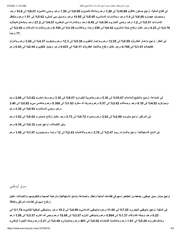 ﻰﻟإ %2.66 «رﺎﻣﺛﺗﺳﻼﻟ تارﺎﻣﻹا»و مھرد 0.154 ﻰﻟإ %3.35 «بﺎﺗﺗﻛا»و ،ًﺎﻣھرد 239 ﻰﻟإ %0.42 «قرﺷﻣﻟا كﻧﺑ» عﺎﻔﺗرا لﺑﺎﻘﻣ ،مھرد 0.23 ﻰﻟإ %3.76