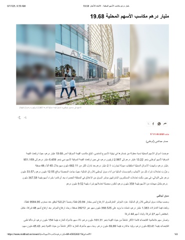 (ﺔﯾﻔﯾﺷرأ) مھرد نوﯾﻠﯾرﺗ 2.987 ﺎھردﻗ ﺔﯾﻗوﺳ ﮫﻣﯾﻗ لﺟﺳﺗ «ﻲﺑظوﺑأ قوﺳ» ﻲﻓ مﮭﺳﻷا