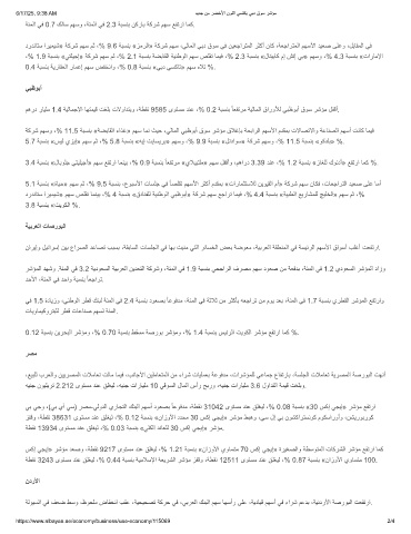 0.4 ﺔﺑﺳﻧﺑ ﺔﯾرﺎﻘﻌﻟا رﺎﻣﻋإ مﮭﺳ ضﻔﺧﻧاو ،% 0.8 ﺔﺑﺳﻧﺑ «ﻲﺑد ﻲﺳﻛﺎﺗ» مﮭﺳ هﻼﺗ %.