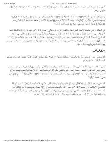 ﻚﯾرد)) ﻢﮭﺳ ﻞﻔﻗأو ،ﻢھارد 8.39 ﺪﻨﻋ %0.1 ﻮﺤﻨﺑ ((ﻲﻣﻼﺳﻹا ﻲﺑد)) ﻢﮭﺳ ﺾﻔﺨﻧا ﻦﯿﺣ ﻲﻓ ،%3.2 ﺔﺒﺴﻨﺑ ((مﻼﺴﻟا