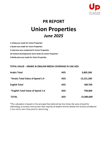TOTAL VALUE – ARABIC & ENGLISH MEDIA COVERAGE IN UAE AED.