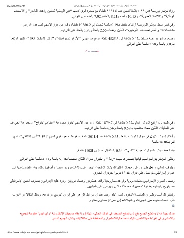 ﺎﻌﻔﺗرا ﻦﯾﺬﻠﻟا ،”زﺎﻐﻟا تﺎﻜﺒﺸﻟ ﻮﯿﻛوأ”و ”ﻚﯿﻣاﺮﯿﺴﻠﻟ راﻮﻧﻷا“ ﻲﻤﮭﺳ ﻦﻣ ﻢﻋﺪﺑ ،ﺔﻄﻘﻧ 4525.3 ﻰﻟإ ﺔﺌﻤﻟﺎﺑ 0.42ـﺑ ﻂﻘﺴﻣ ﺔﺻرﻮﺑ ﺮﺷﺆﻣ ﺪﻌﺻو