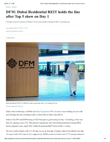 https://gulfnews.com/business/markets/dfm-dubai-residential-reit-holds-the-line-after-top-5-show-on-day-1-1.500146067 1/2