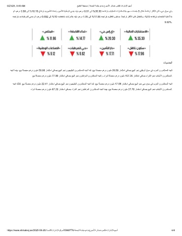 مﺛ ،مھرد 3.58 ﻰﻟإ %10.15 عﺎﻔﺗرﺎﺑ «نﯾﻣﺄﺗﻟا ةدﺎﻋإو نﯾﻣﺄﺗﻠﻟ ﺔﯾﻧطوﻟا ﻲﺑد» ﮫﯾﻠﯾ ،مھرد 8.01 ﻰﻟإ %35.30 ﮫﻋﺎﻔﺗرﺎﺑ «ﺔﯾﻟﺎﻣﻟا تارﺎﺷﺗﺳﻻا» مﮭﺳ ،تﺎﺳﻠﺟ 5 لﻼﺧ ً ﺎﻋﺎﻔﺗرا رﺛﻛﻷا نﺎﻛ ،ﻲﺑد قوﺳ ﻲﻓو