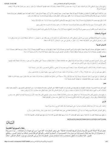 .%1.92 ﺔﯿﺑﺮﻌﻟا سﺎﺗﻮﺒﻟا ﻢﮭﺳ ﻊﺟاﺮﺗو ،%3.85 ﻲﺑﺮﻌﻟا ﻚﻨﺒﻟا ﻢﮭﺳو %2.37 تﺎﻔﺳﻮﻔﻟا ﻢﺟﺎﻨﻣ ﻢﮭﺳو %0.82 لوﺮﺘﺒﻟا ةﺎﻔﺼﻣ ﻢﮭﺳ ﻊﻔﺗراو
