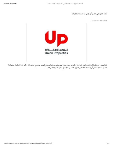 6/26/25, 10:03 AM ﺔﯾرﺎﻘﻌﻟا دﺎﺣﺗﻻا» سﻠﺟﻣﺑ ًاوﺿﻋ ﻲﻧﺳوﺣﻟا دﻣﺣأ | ﺔﯾﺗارﺎﻣﻹا ﺞﯾﻠﺧﻟا ﺔﻔﯾﺣﺻ»