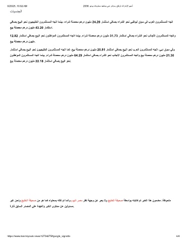 ﻲﻓﺎﺻﺑ ﻊﯾﺑﻟا وﺣﻧ نوﯾﺟﯾﻠﺧﻟا نورﻣﺛﺗﺳﻣﻟا ﮫﺟﺗا ﺎﻣﻧﯾﺑ ،ءارﺷ ﺔﻠﺻﺣﻣ مھرد نوﯾﻠﻣ 24.28 رﺎﻣﺛﺗﺳا ﻲﻓﺎﺻﺑ ءارﺷﻟا وﺣﻧ ﻲﺑظوﺑأ قوﺳ ﻲﻓ برﻌﻟا نورﻣﺛﺗﺳﻣﻟا ﮫﺟﺗا