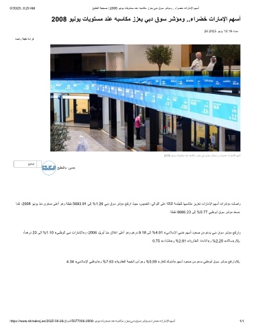 6/30/25, 9:29 AM ﺞﯾﻠﺧﻟا ﺔﻔﯾﺣﺻ | 2008 وﯾﻧوﯾ تﺎﯾوﺗﺳﻣ دﻧﻋ ﮫﺑﺳﺎﻛﻣ ززﻌﯾ ﻲﺑد قوﺳ رﺷؤﻣو ..ءارﺿﺧ تارﺎﻣﻹا مﮭﺳأ