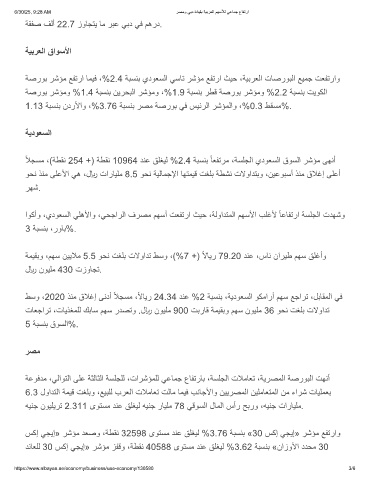 ﺔﺻروﺑ رﺷؤﻣ ﻊﻔﺗرا ﺎﻣﯾﻓ ،%2.4 ﺔﺑﺳﻧﺑ يدوﻌﺳﻟا ﻲﺳﺎﺗ رﺷؤﻣ ﻊﻔﺗرا ثﯾﺣ ،ﺔﯾﺑرﻌﻟا تﺎﺻروﺑﻟا ﻊﯾﻣﺟ تﻌﻔﺗراو