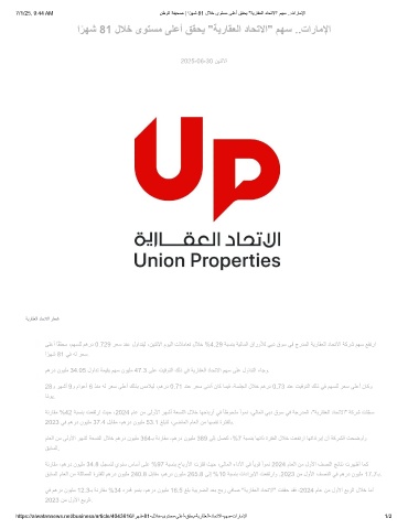 ﺔﻧرﺎﻘﻣ %42 ﺔﺑﺳﻧﺑ تﻌﻔﺗرا ثﯾﺣ ،2024 مﺎﻋ نﻣ ﻰﻟوﻷا رﮭﺷأ ﺔﻌﺳﺗﻟا لﻼﺧ ﺎﮭﺣﺎﺑرأ ﻲﻓ ً ﺎظوﺣﻠﻣ ًاوﻣﻧ ،ﻲﻟﺎﻣﻟا ﻲﺑد قوﺳ ﻲﻓ ﺔﺟردﻣﻟا ،"ﺔﯾرﺎﻘﻌﻟا دﺎﺣﺗﻻا" ﺔﻛرﺷ تﻠّﺟﺳ