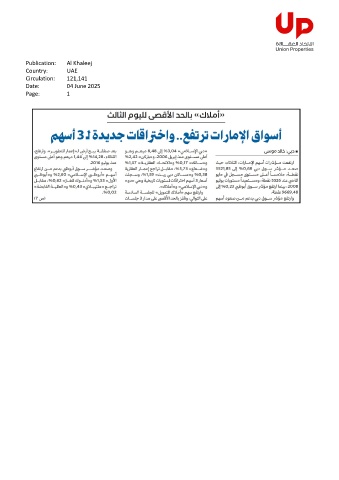 Publication: Al Khaleej Country: UAE Circulation: 121,141 Date: 04 June 2025 Page: 1
