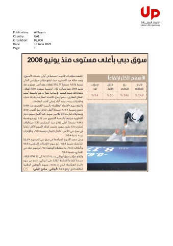 Publication: Al Bayan Country: UAE Circulation: 88,000 Date: 10 June 2025 Page: 1