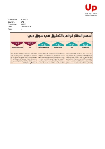 Publication: Al Bayan Country: UAE Circulation: 88,000 Date: 12 June 2025 Page: 1