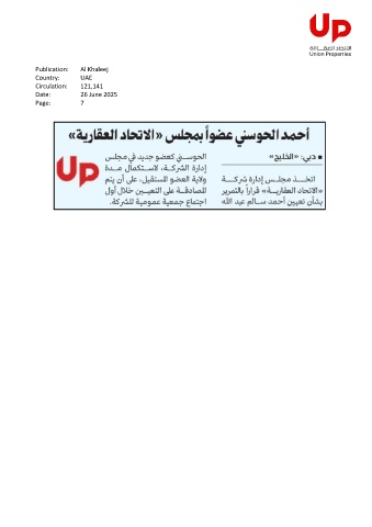Publication: Al Khaleej Country: UAE Circulation: 121,141 Date: 26 June 2025 Page: 7