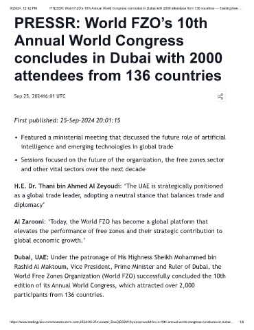9/29/24, 12:12 PM PRESSR: World FZO’s 10th Annual World Congress concludes in Dubai with 2000 attendees from 136 countries — TradingView …