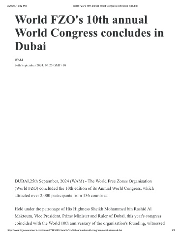 9/29/24, 12:12 PM World FZO's 10th annual World Congress concludes in Dubai