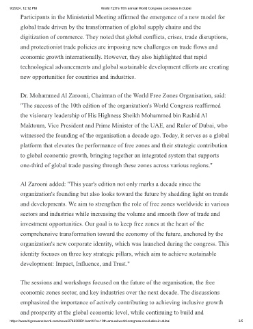 9/29/24, 12:12 PM World FZO's 10th annual World Congress concludes in Dubai